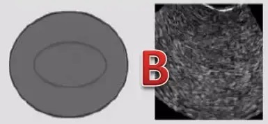 常见于排卵期或排卵后不久,超声表现介于A型和C型之间,功能层内膜回声增强,三线征变得模糊。