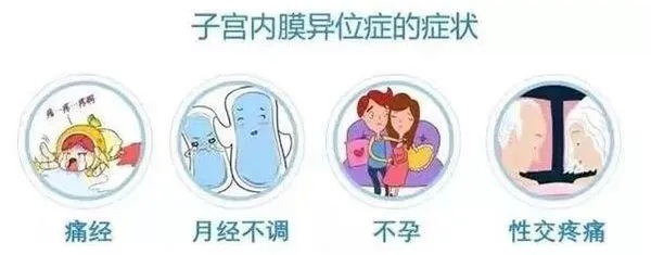 常见症状有:痛经 (逐渐加重)、慢性盆腔疼痛、性交痛、月经异常、不孕 (约30%~50%的患者合并不孕)。