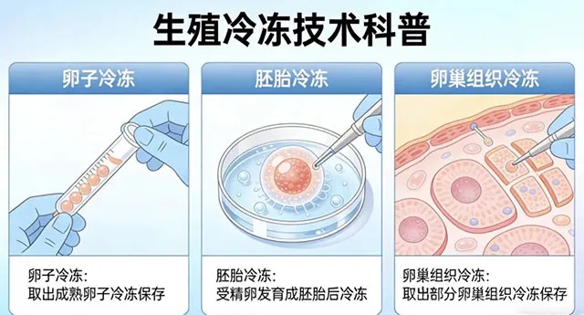 ◆ 卵巢组织冷冻:主要通过将女性健康的卵巢组织取出并进行冷冻保存,待未来有生育需求时,再将冻存的卵巢组织解冻后移植回体内,以恢复卵巢的内分泌功能和排卵能力,帮助女性实现生育愿望,尤其为面临癌症治疗 (如化疗、放疗可能损伤卵巢功能) 等生育力威胁的女性提供了关键保障。