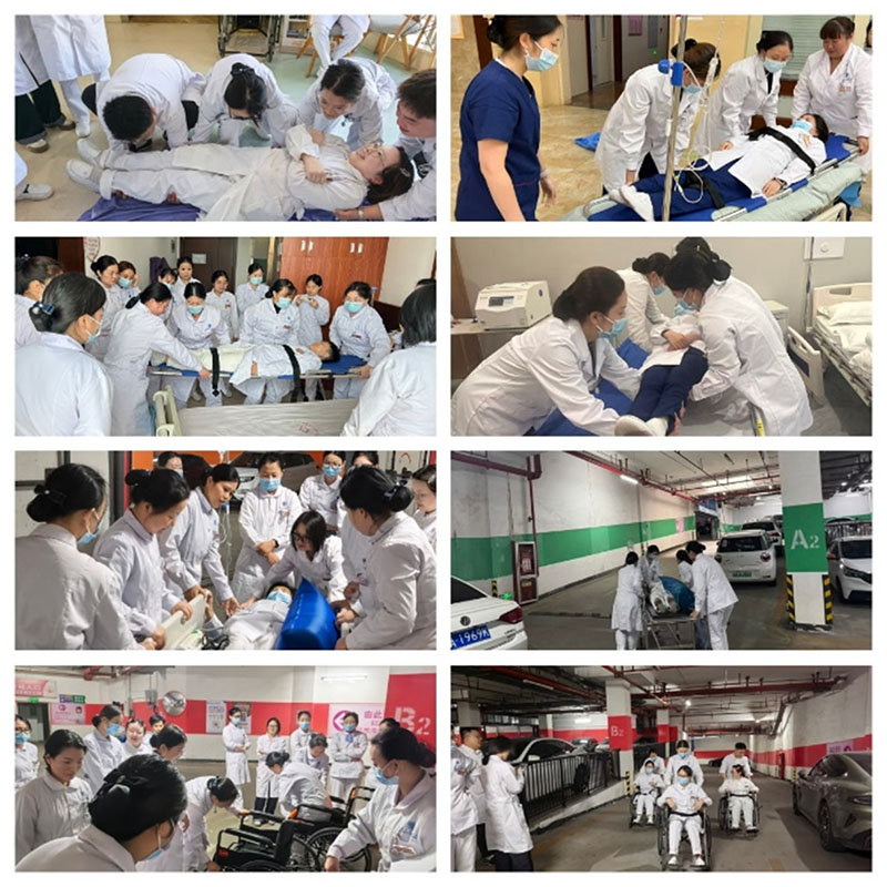 在为期10天的培训中,护士们轮流扮演标准化患者,亲身模拟行动不便或病情危重的患者。培训现场,同事们小心翼翼地将“患者”从病床安全转移至.平车,然后绕过模拟障碍物,场下观摩人员认真观察着手法、支点与团队配合,让原本停留在流程步骤上的技术规范,转化为对患者心理需求与身体感受的具象化理解。一位刚体验完平车转运的护士分享道:“只有当自己真正躺上去,才能切身体会到一个小小的颠簸、一次速度的突然变化会给患者带来多大的不安全感。让我深刻意识到操作时每一个细节的温柔与稳定有多么重要。”护理部主任表示:“技术是冰冷的,但护理是有温度的。我们组织这次培训的初衷,就是要打破‘唯技术论’框架。让护士们通过亲身感受,真正站在患者的角度去思考如何优化操作细节。比如,搬运时如何减少患者身体的暴露感,转运途中如何通过有效沟通消除患者的紧张情绪,这些无法通过条文规定,却直接影响着患者的舒适度和安全感。”